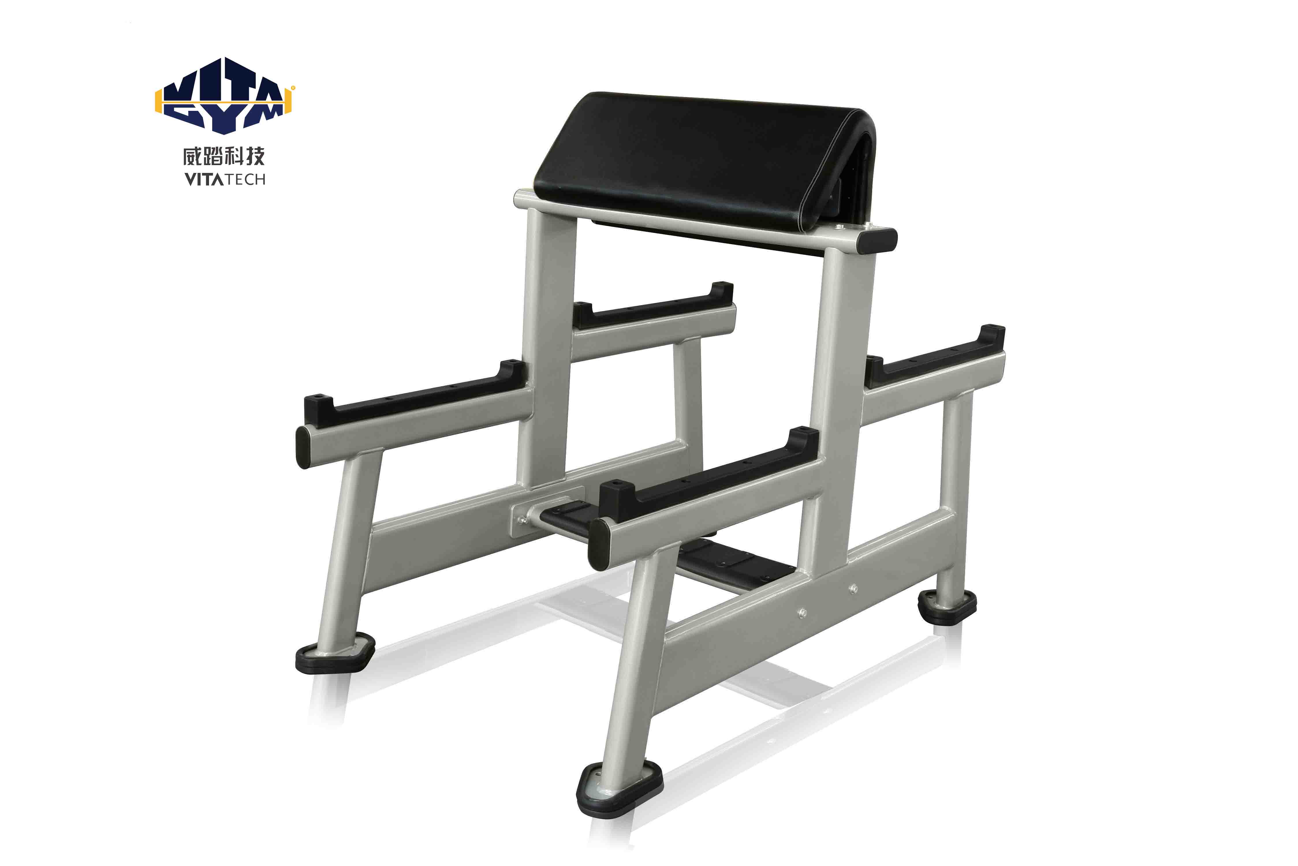 - 型号:V8-302 尺寸:1224*690*891 重量:68KG 1. 主管材:SPHC137*40*3平椭圆管,新颖独特。 2. 座、靠垫均采用聚氨酯发泡工艺,表面为1mm高档加厚PVC皮革面料,耐磨,耐汗,耐候性极佳。 3. 紧固件采用美制8.8级镀镍点耐落螺丝,坚固耐用,永不生锈。 4. 表面采用亮银灰涂层,亮丽美观。 5. 可调护膝能调整胫长和运动范围 6. 高密度塑料下的重量角块能保护表面漆层 7.大型球状轴承能确保运动顺畅